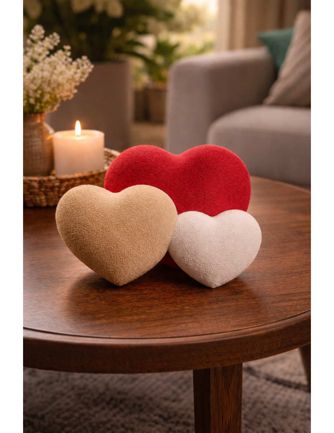 Dekorative Hjerter Sæt 3 Stk – Fuzzy Tekstur Hvid Rød Beige
