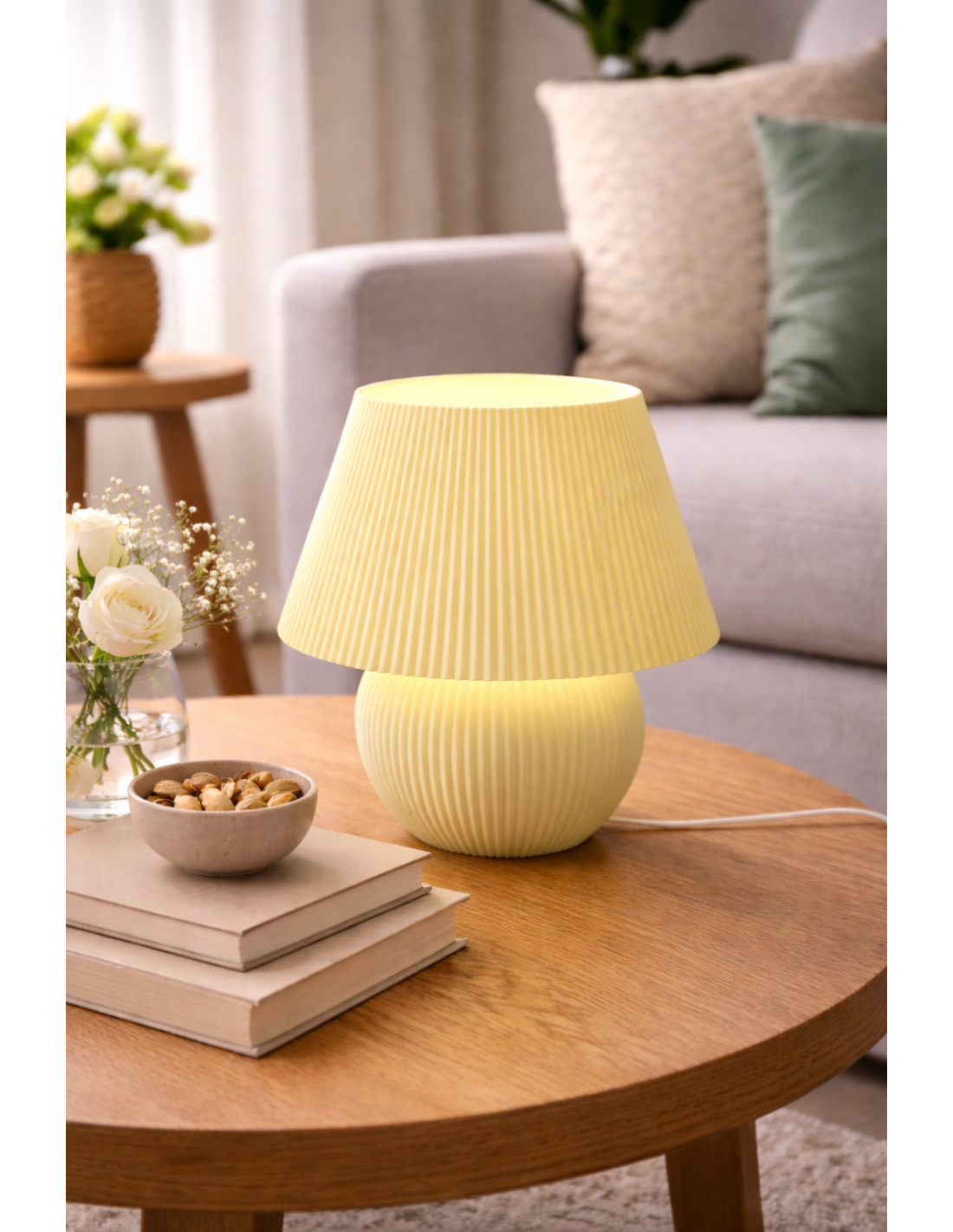 Denne elegante LED lampe i mintgrøn farve med ribbet design kombinerer moderne æstetik med smart funktionalitet. Med RGB farveskift, fjernbetjening og USB tilslutning er den perfekt stemningsbelysning til ethvert rum.