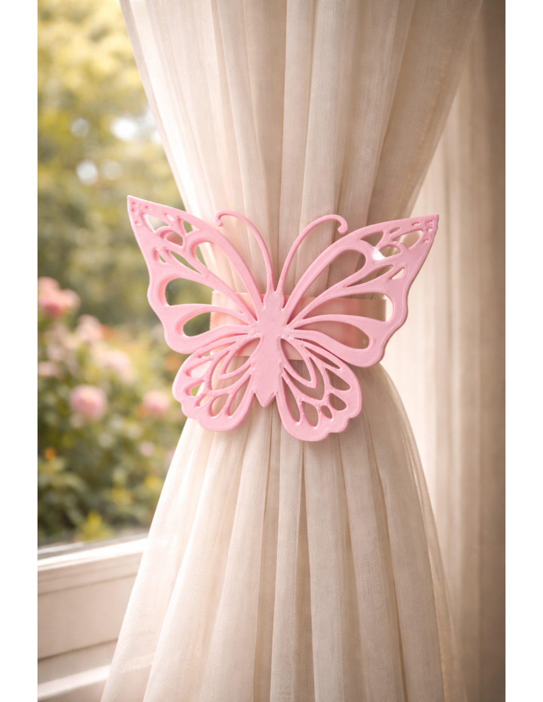 This elegant butterfly curtain holder in pink color with cut-out design is the perfect way to keep curtains in place while adding a decorative touch to your home.