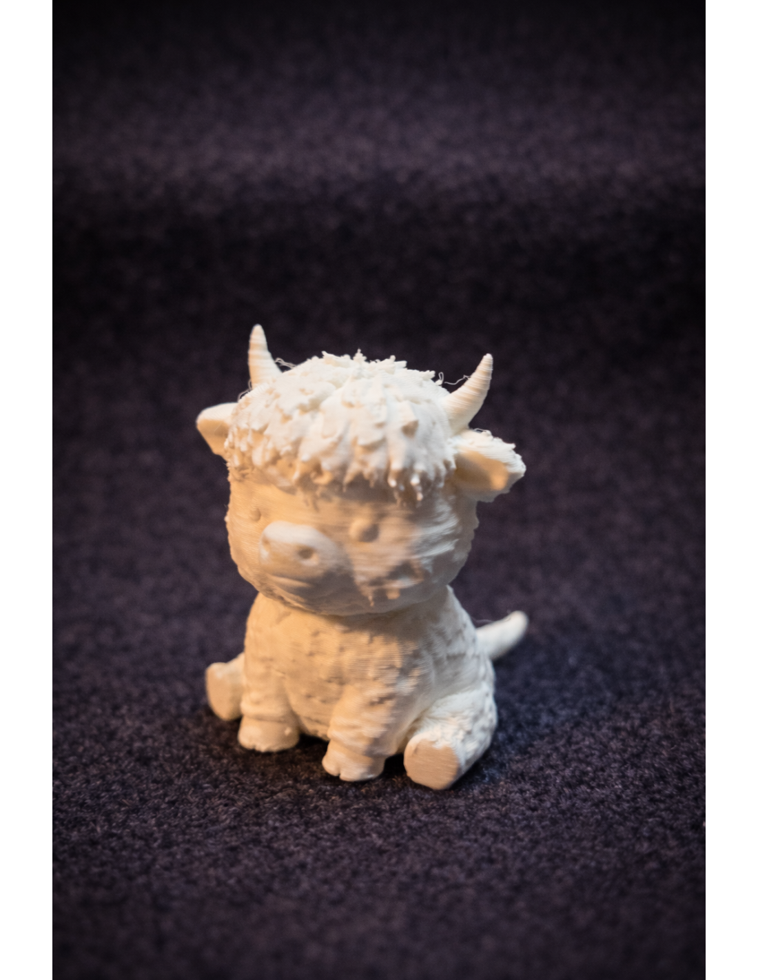 - Design: Seated Highland Cow with Fur and Horns