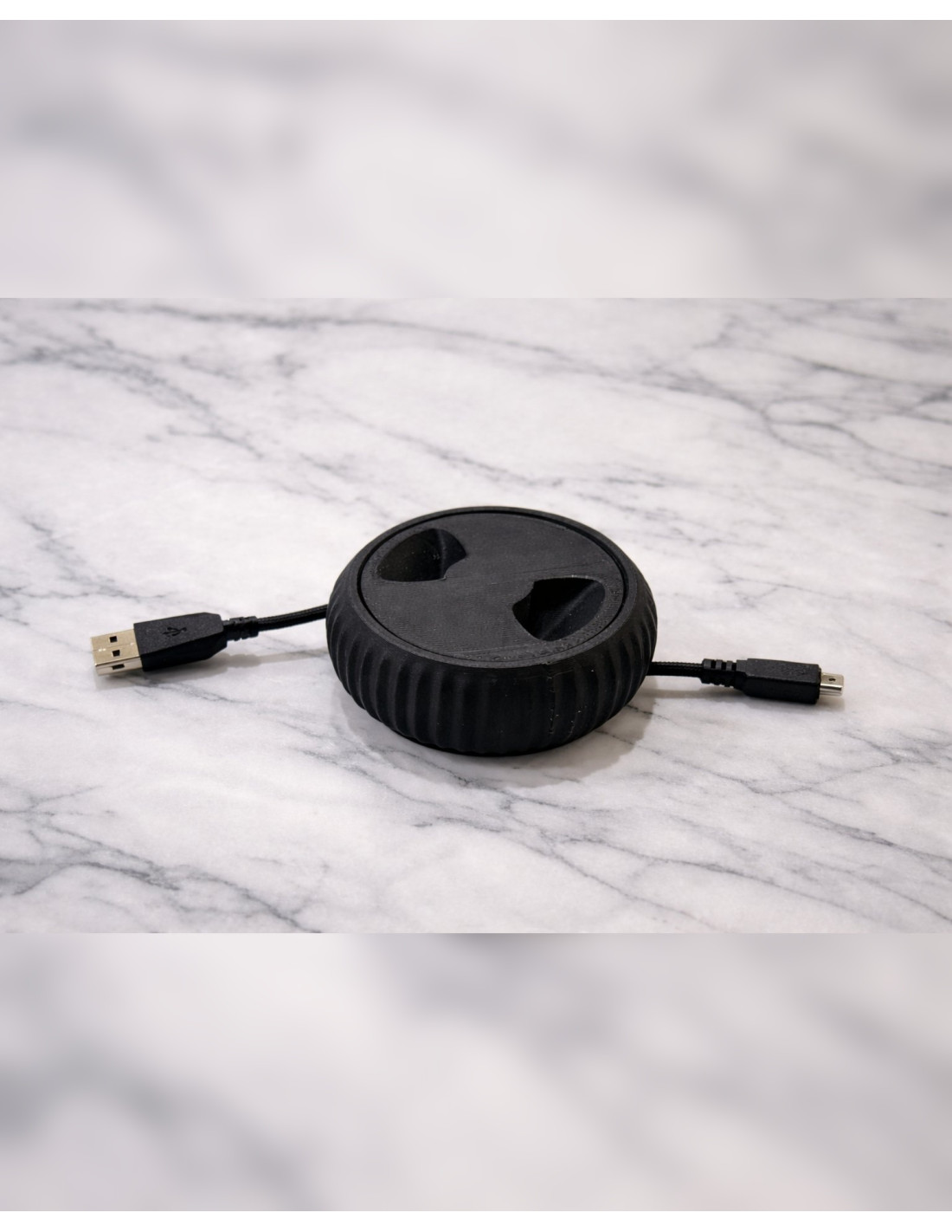 Compact USB cable reel for approx. 1.5 m cable - easy and tidy storage.