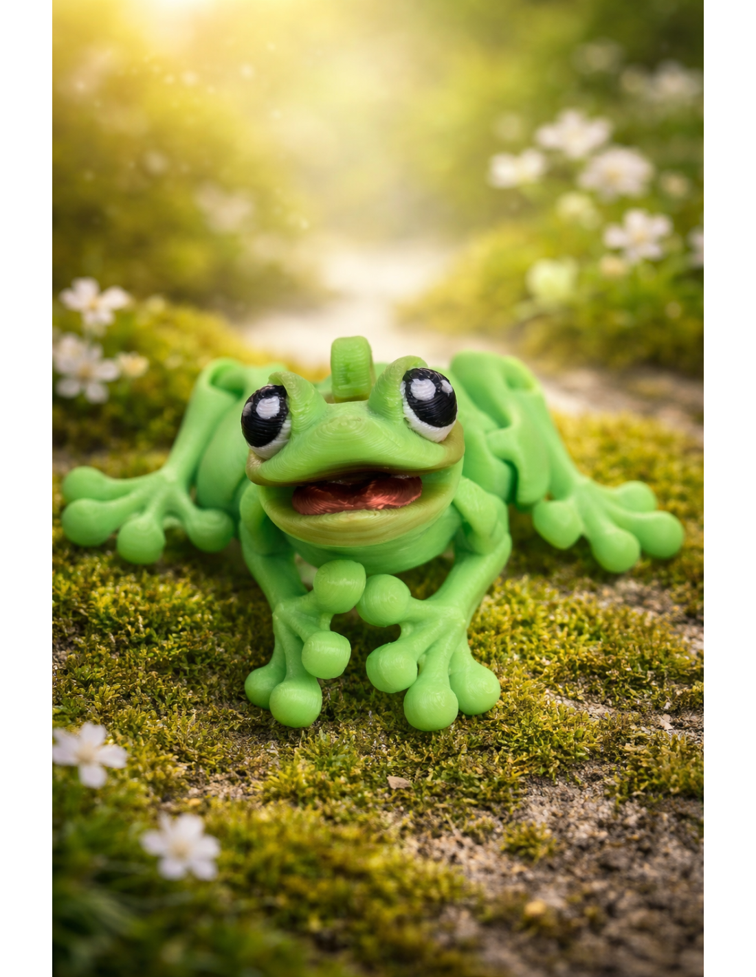 Denne charmerende fleksible frø i grøn farve er perfekt som legetøj, fidget toy eller dekoration. Med store øjne, åben mund og fuldt bevægelige ben er denne lille frø både sød og sjov at lege med.