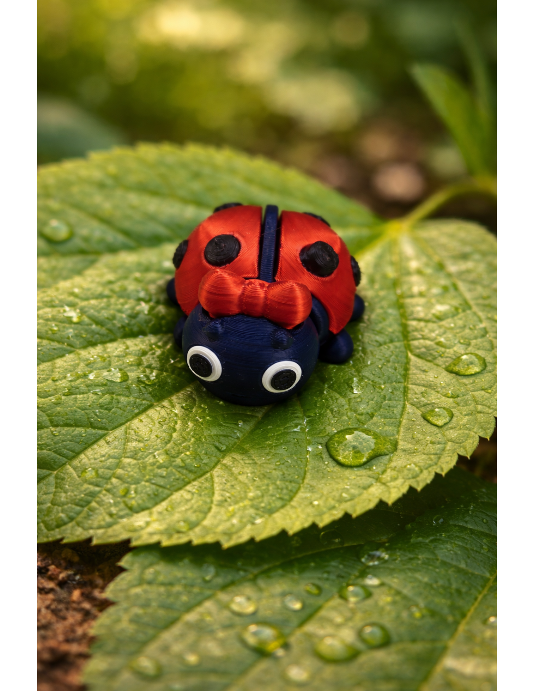 Bemærk: Da produktet er 3D-printet, kan små variationer i finish og farveaccenter forekomme. Hver mariehøne er unik. Print-linjer er synlige og normalt for 3D-printede produkter, hvilket tilføjer til den håndlavede karakter.