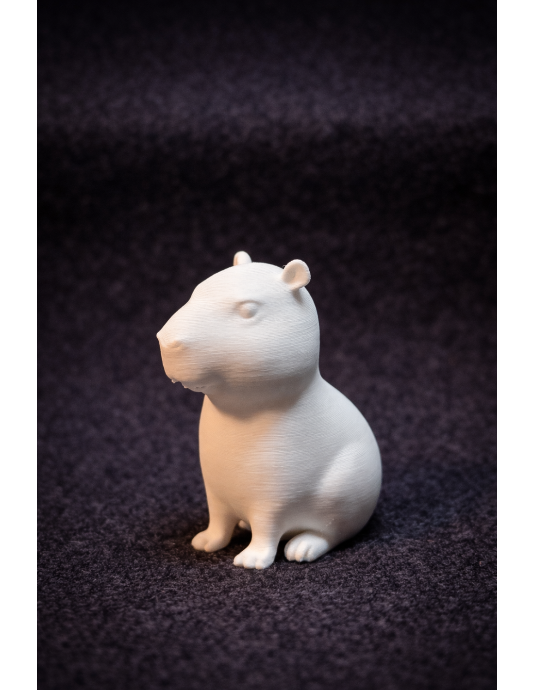 Denne charmerende kapybara figur i hvid farve er klar til at blive malet. Med sin søde siddende position og rolige udtryk er den perfekt til kreative projekter.
