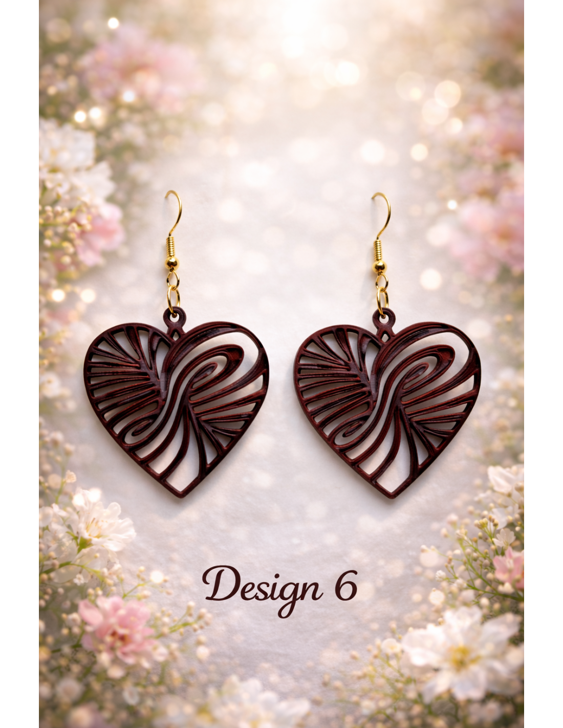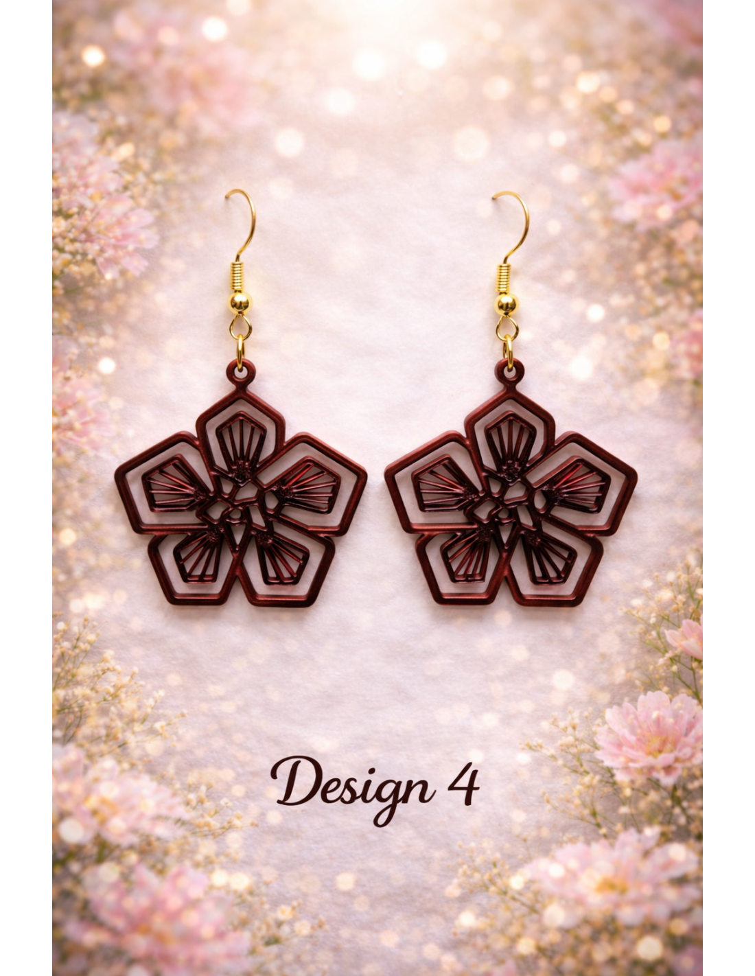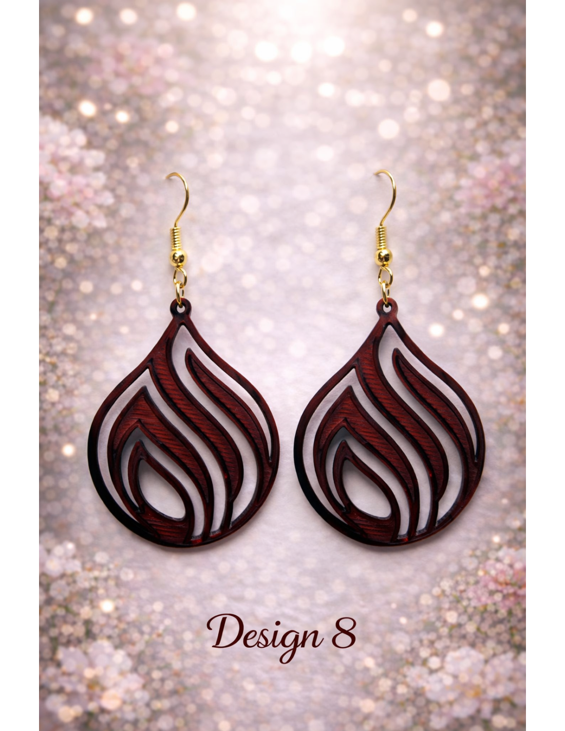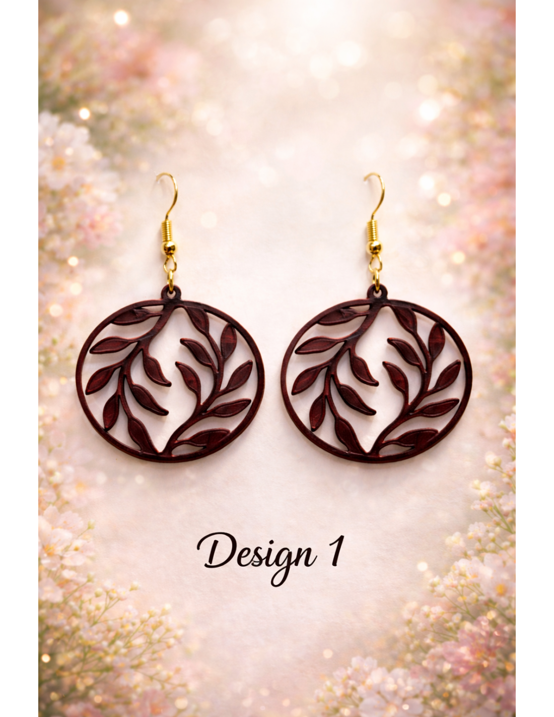 3D Printede Øreringe – Mahogni Træ-Look 9 Designs
